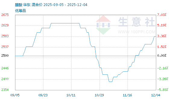 12月4日生意社醋酸基准价为2583.33元/吨