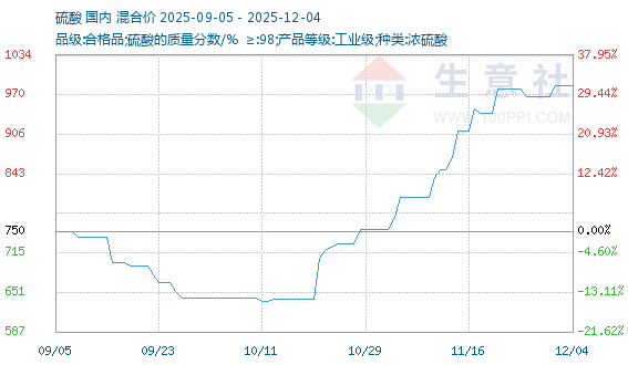 12月4日生意社硫酸基准价为985.00元/吨