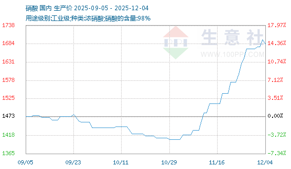 12月4日生意社硝酸基准价为1696.67元/吨